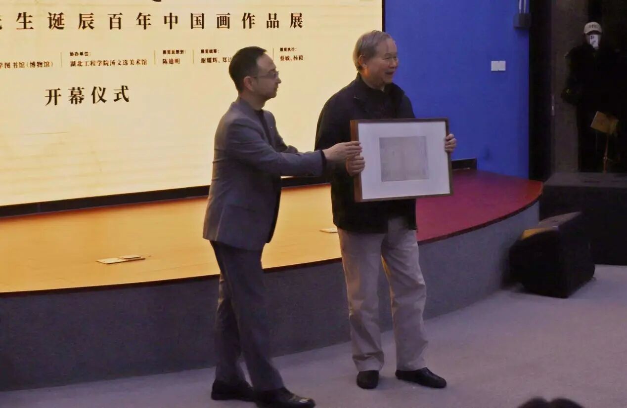 在随后举行的捐赠仪式中,汤立先生将《婆媳上冬学》高清复制作品赠予华中师范大学美术学院。该作品创作于1953年,曾获第二届全国美术作品展一等奖,并被中国美术馆收藏,其复制品亦曾作为国礼赠予苏联政府,具有重要的艺术与历史价值。美术学院院长郑达代表学院接受赠礼,并回赠汤文选先生在校任教期间的珍贵教师名册复印件,以文脉延续见证两代情谊。