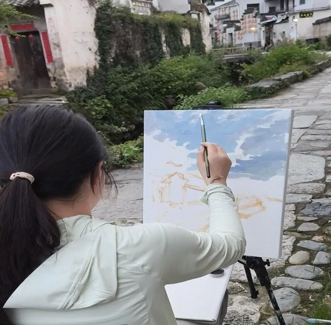 从专业创作来看,屏山的实践让我们掌握了基础技法,而西递、宏村的采风则教会我们“积累与思考”——正如一位同学所说到:以前觉得画画就是对着景物画,现在才懂,老师让我们拍砖雕、记格局,是为了让画面不止有形态,更有背后的故事。那些在西递记下的雕刻题材、宏村观察的水系布局,已经成了我后续创作的灵感库。