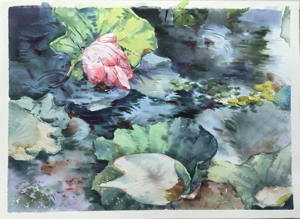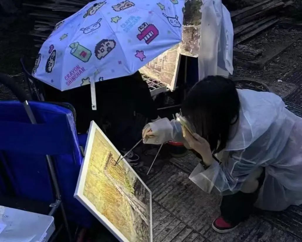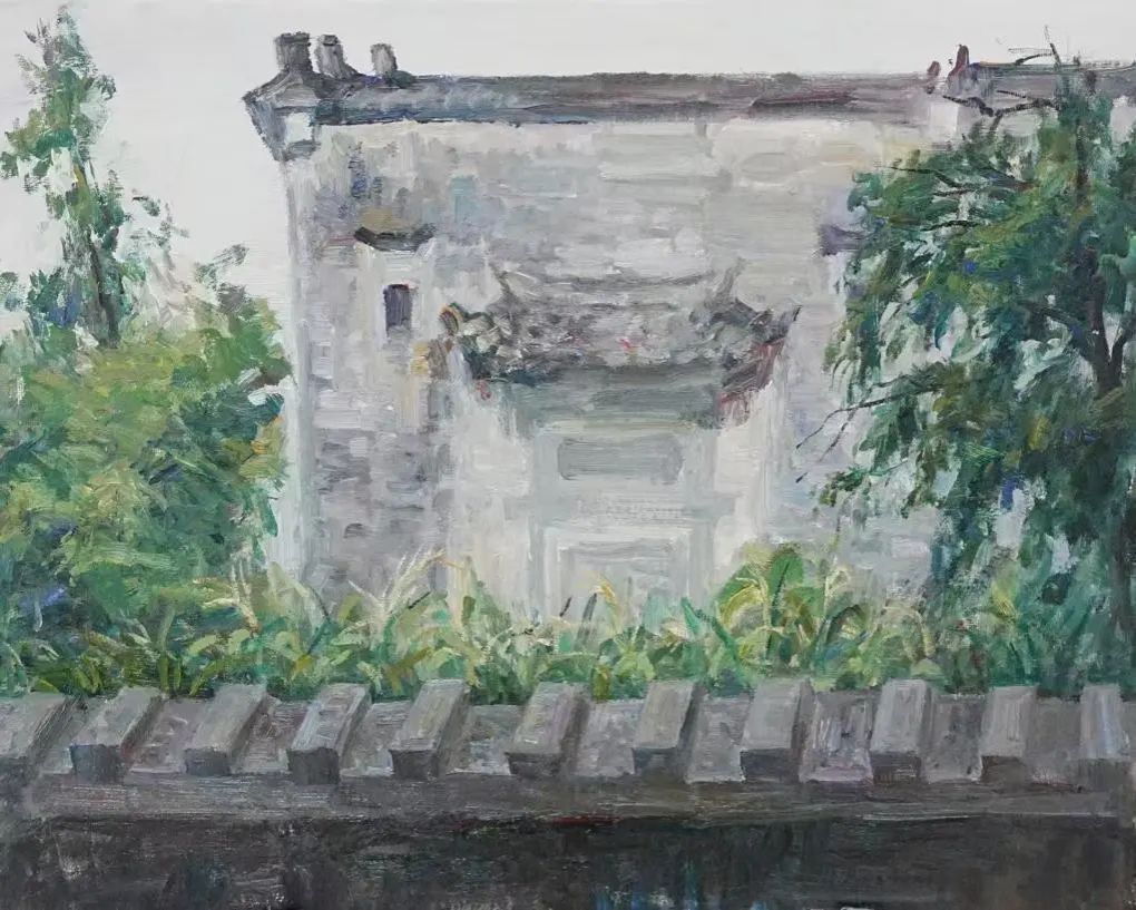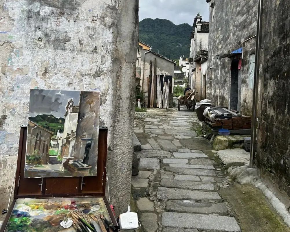 6月21日,团队抵达屏山写生基地,正式开启实践之旅。尽管梅雨季节给写生带来了诸多限制,但是那些被雨水浸润的叶片、带着水汽的屋檐、氤氲的街巷,都成为独一无二的素材。老师结合屏山“小桥流水人家”的格局,针对性指导构图与笔法。针对徽派建筑“白墙黛瓦”的色彩表现难点,示范用不同灰度的颜料叠加:“白墙不是纯白,雨雾中是带青,午后偏暖黄,要跟着光线调颜色。”