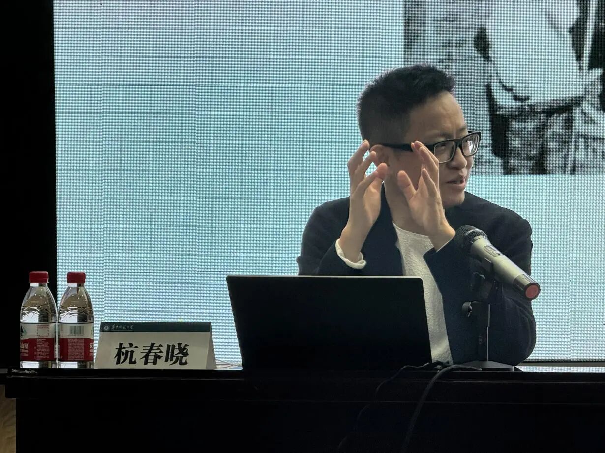 2025年10月18日上午,华中师范大学美术学院主办的《文本再阅读——近代艺术史中的“人”与记述》学术讲座于学院一楼报告厅举行。本次讲座由中国艺术研究院研究员、美术研究所所长、《美术观察》杂志社社长、博士生导师,文化部优秀专家杭春晓主讲,我院美术史教研室主任杨贤宗老师主持,吸引了学院众多师生踊跃参与。